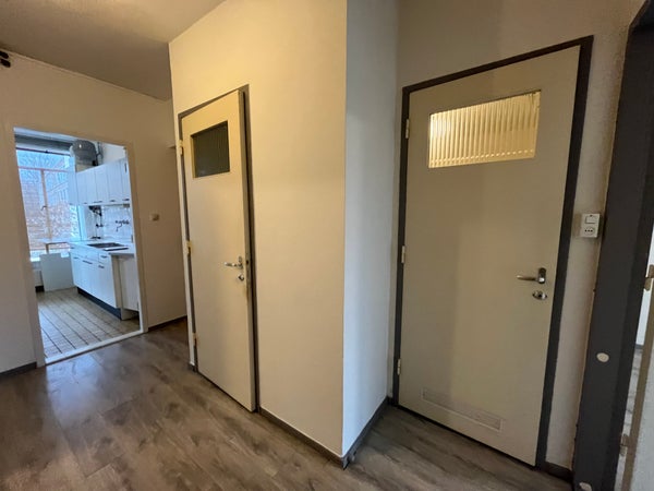 Gesloten portiek met brievenbussen, privé bergingen en trappenhuis. Via de hal in de woning heb je toegang tot alle kamers. De woning heeft een aparte slaapkamer aan de achterzijde van de woning. De woonkamer ensuite is zo op te delen dat er een extra slaapkamer gemaakt kan worden.
