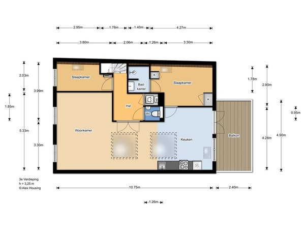Het appartement is gelegen op de 3e verdieping, hal met inbouwkasten, toilet met wastafel, zeer ruime woonkamer/ eetkamer met moderne open volledig uitgeruste keuken en Franse deuren naar het heerlijke ruime terras, hoofdslaapkamer met inbouwkasten, badkamer met douche en wastafel, 2e slaapkamer/kantoor.