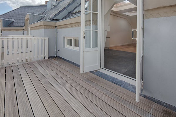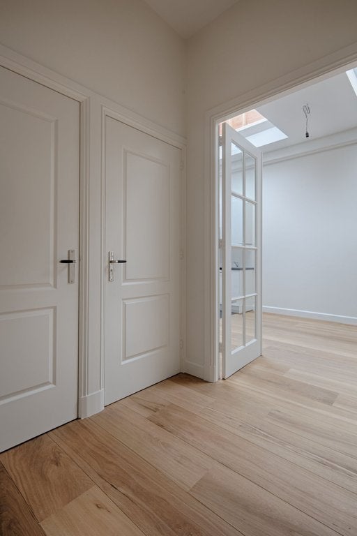 Hoge plafonds, luxe keuken en badkamer, dubbele beglazing en houten vloeren door het hele appartement.