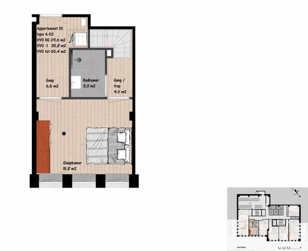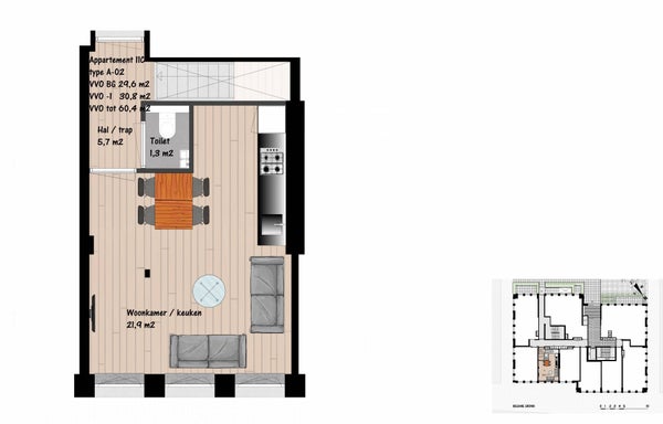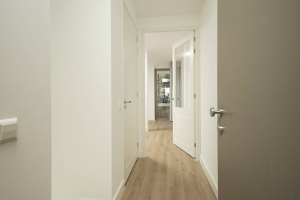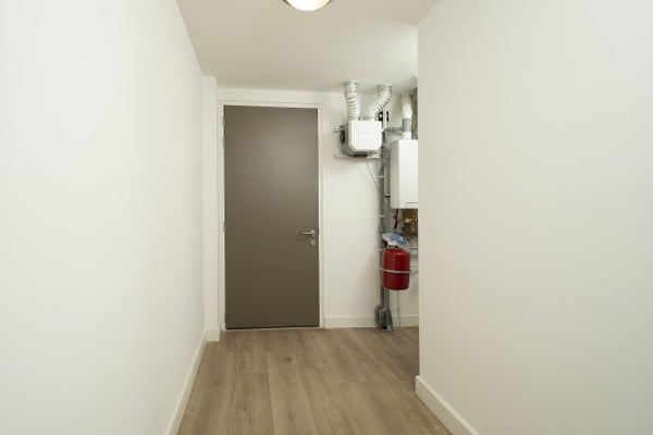 Wasmachineaansluiting in ruime inpandige bergkast waar ook cv-ketel en het automatische afzuigsysteem zich bevinden. Het appartement wordt opgeleverd met verduisterende gordijnen van hoge kwaliteit. Ook is het gehele appartement voorzien van luxe PVC vloeren met een realistische hout-look.