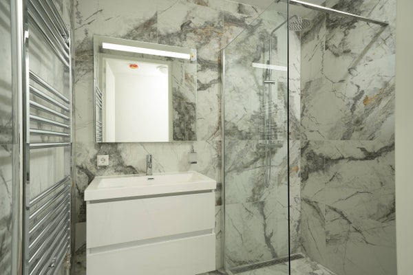 De luxe badkamers zijn voorzien van een luxe inloopdouche, wastafel met inbouwkast, inbouwspots en een design handdoekradiator. De wand- en vloerbekleding zorgen voor een extra luxe touch.