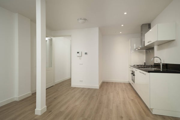 Woonkamer is zeer licht door dat dit appartement aan de achterzijde ligt (zuidwesten), de luxe keuken uitkomt. Keuken is voorzien van alle gemakken, afzuigkap, combi-oven, gaskookplaat, middelgrote koelkast, vriezer, vaatwasser en werkblad van composiet.