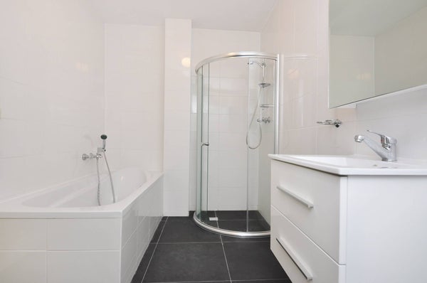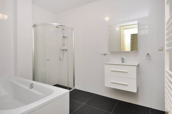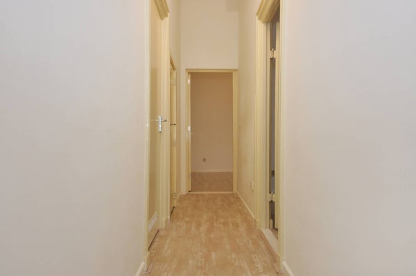 Entree appartement. U komt binnen in de hal welke toegang verleent tot de gloednieuwe luxe keuken welke is voorzien van inbouwapparatuur ( kookplaat, afzuigkap, koelkast ,combimagnetron en vaatwasser) vanuit de hal toegang tot een ruim opgezette gang welke toegang verleent tot de heerlijk lichte en ruime woonkamer en alle overige vertrekken. Luxe en zeer ruime badkamer welke voorzien is van een ligbad, separate douche, vaste wastafel, handdoeken radiator en toilet. Zeer ruime en heerlijke lichte slaapkamer van ca.21m.