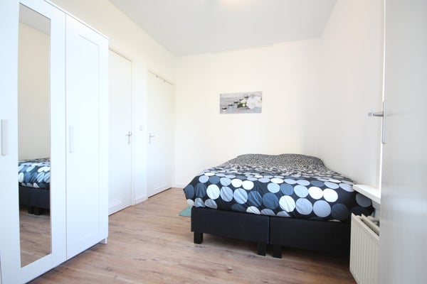 - Ruime slaapkamer met tweepersoonsbed en kledingkast.