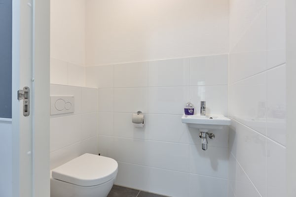In de gang bevinden zich verder nog een separaat zwevend toilet met fonteintje en een zeer riante bergruimte waar tevens de wasmachine staat opgesteld.
