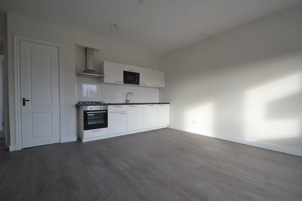 INDELING: Entree op straatniveau, u betreedt de gemeenschappelijke ruimte. U neemt de trap naar de 2e etage waar het appartement zich aan de voorzijde bevindt. Voordeur, entree appartement in de hal waar vanuit u alle vertrekken kunt betreden. Woonkamer van circa. 29 m². Openkeuken welke is voorzien van een kookplaat, koelkast, afzuigkap, oven, magnetron en vaatwasser. Slaapkamer van circa. 9 m². Badkamer welke is voorzien van een douche, toilet en wastafel.