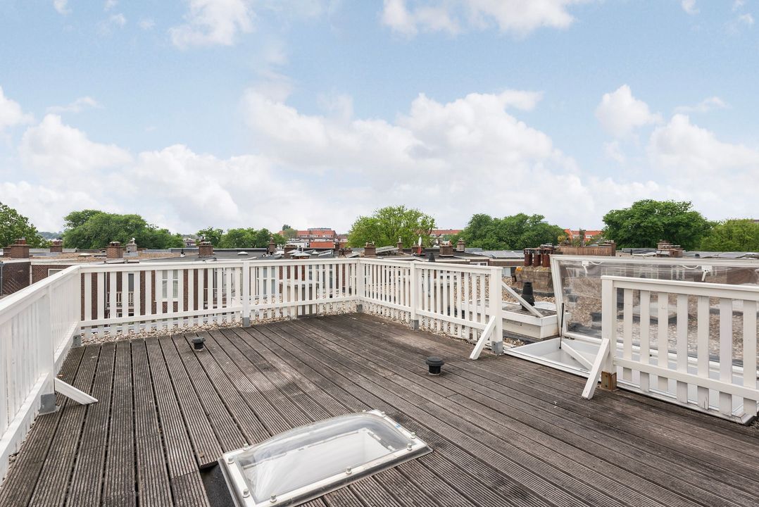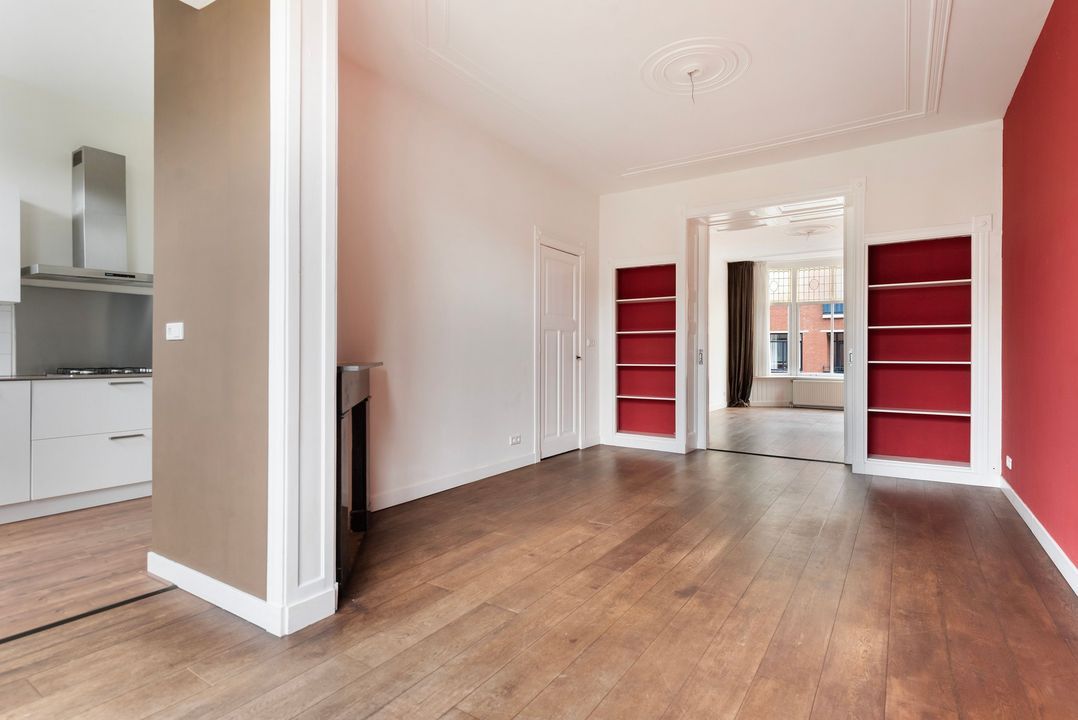 Dit ruime en charmante tweelaags bovenhuis in het Statenkwartier biedt 4 slaapkamers en een dakterras. Het is gelegen op loopafstand van de winkels aan de Frederik Hendriklaan, verschillende internationale organisaties, scholen, de haven, het strand en openbaar vervoer. De indeling is als volgt: bij binnenkomst leidt een trap naar de eerste verdieping, waar een overloop met bergkast en toilet aanwezig is. De woon-eetkamer is en suite en beschikt over een open haard en parketvloeren, met een halfopen keuken voorzien van inbouwapparatuur. Op de tweede verdieping komt men via een trap op een overloop met wasruimte en toilet. Hier zijn een ruime slaapkamer, een zijkamer, en een badkamer met wastafelmeubel en inloopdouche. De hoofdslaapkamer aan de achterzijde heeft toegang tot een balkon, evenals een zijkamer. Het dakterras is bereikbaar via een vaste trap.