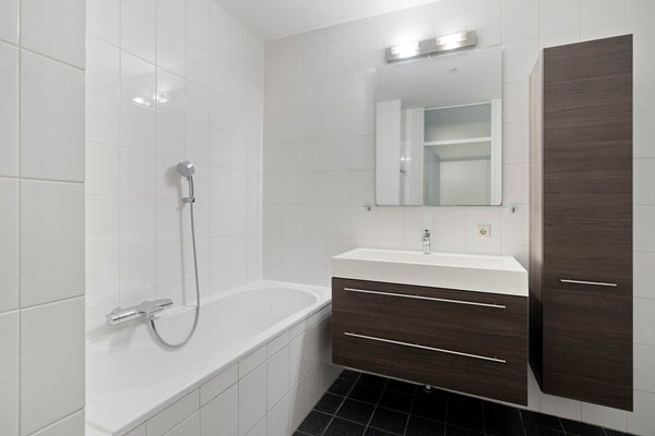 Boven biedt de eerste verdieping drie comfortabele slaapkamers, een aparte toiletruimte en een goed ingerichte badkamer met een wastafel, douche, badkuip, radiator en veel opbergruimte voor toiletartikelen en benodigdheden.
