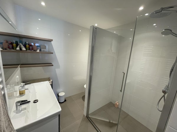 Hoofdslaapkamer aan de achterkant (ongeveer 4.56/3.50) met ensuite moderne badkamer met inloopdouche, toilet, dubbele wastafel en designradiator, gasten slaapkamer/kantoor (ongeveer 3.50/3.20), 2e badkamer met douche en wastafel.