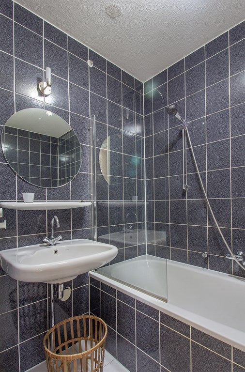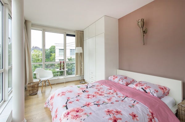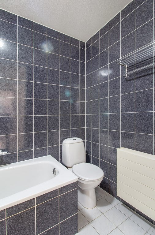 Er zijn twee goed bemeten slaapkamers aan de achterkant van het appartement. De hoofdslaapkamer heeft grote ramen die een lichte en serene sfeer creëren. De badkamer is uitgerust met een bad, wastafel en een tweede toilet. Er is ook een aparte wasruimte met een wasmachine en droger.