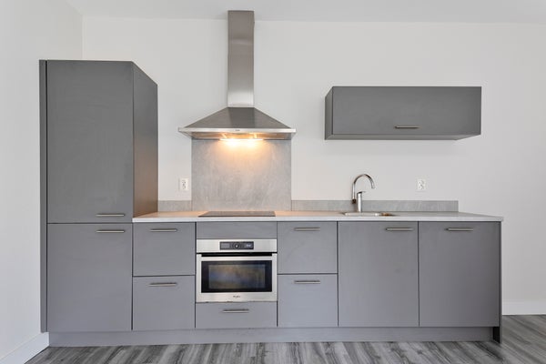 Het appartement beschikt over een ruime woonkamer, luxe keuken met alle benodigde inbouwapparatuur en een mooie badkamer met een inloopdouche. De foto's die zijn weergegeven zijn impressiebeelden van een vergelijkbare woning.
