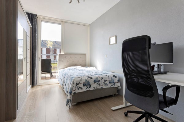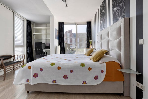 De tweede slaapkamer heeft ook een groot raam en directe toegang tot het terras.