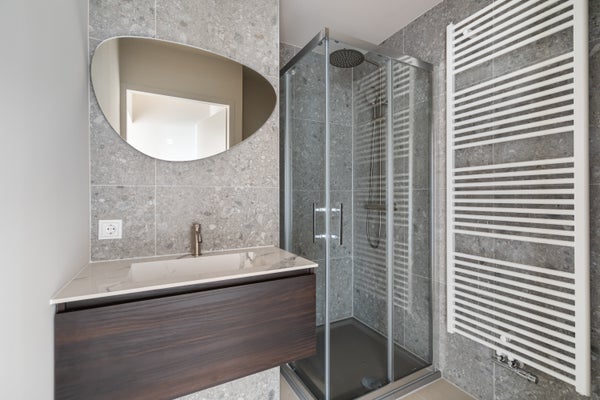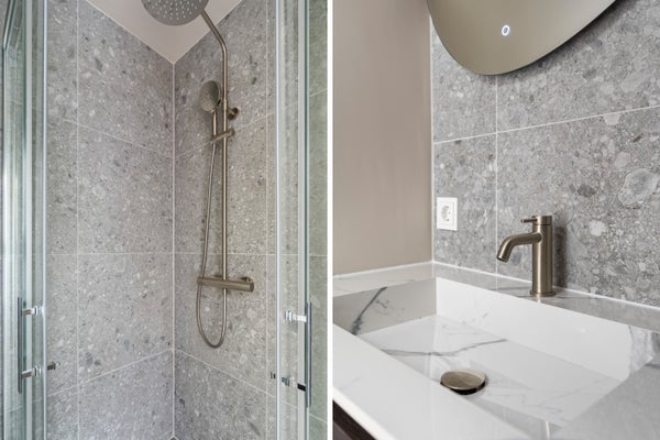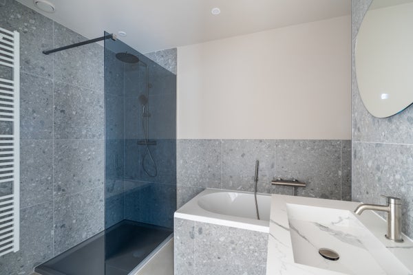 Aan de rechterkant van de hal toegang tot de volledig gerenoveerde badkamers met een tweede separaat toilet.