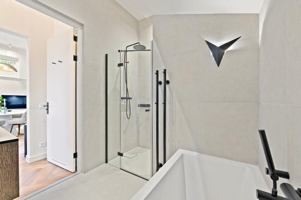 Dit heerlijke eenslaapkamer appartement is gelegen op de begane grond. De entree is bereikbaar vanaf de buitenzijde van het gebouw. Ruime voortuin van ca. 12m2 gelegen op het zuiden. Voordeur met hal. Toegang tot de fenomenaal gerenoveerde woonkamer met visgraat vloer en open keuken. De woning is door de plafondhoogte en raampartijen licht en luxe. De keuken is van alle gemakken voorzien, denk aan een vaatwasser, een inductie kookplaat, een koelvriescombinatie, een Quooker voor direct kokend water en voldoende kastruimte. Toegang tot de gang. Vanuit de gang toegang tot de schitterende badkamer met ligbad, inloopdouche, wastafel met meubel, spiegel met verlichting en verwarming en twee handdoek radiatoren. Separaat toilet gerenoveerd in dezelfde stijl als de badkamer. De prettige slaapkamer is voorzien van een tweepersoonsbed en een handige kledingkast.