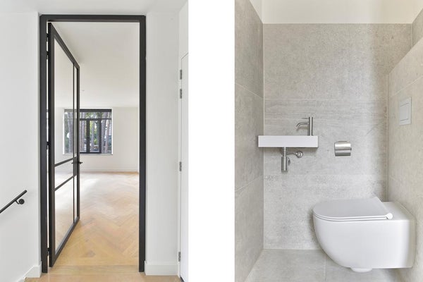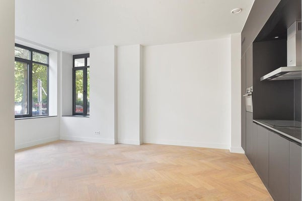 De riante en modern afgewerkte woonkamer voelt als een oase van rust door de mix van kleuren in het appartement. De moderne, strak vormgegeven keuken is voorzien van hoogwaardige inbouwapparatuur en stenen werkbladen.
