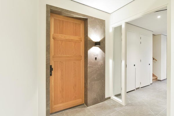 U komt binnen via een statige entree die is afgewerkt met fraai natuurstenen vloer die doorloopt in de lichte gangen naar de appartementen. De natuurstenen afwerking vindt u ook terug in de kaders rond de voordeuren. Uiteraard zijn alle appartementen met de lift te bereiken.