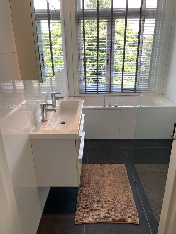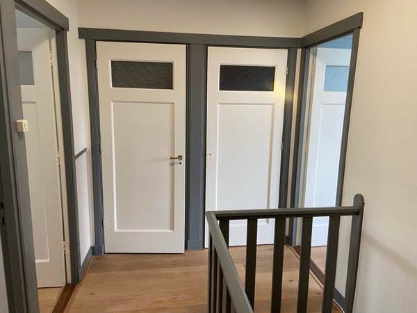 De trap leidt naar de tweede etage, waar de slaapkamers aan de voorzijde van het huis zijn voorzien van dakkapellen en ingebouwde kasten. De eerste badkamer op deze verdieping beschikt over een douche en wastafel. Aan de achterzijde bevindt zich de grote slaapkamer met een ruime kastenwand, marmeren schouw en eigen balkon. Grenzend aan deze slaapkamer ligt de moderne badkamer, uitgerust met een ligbad, inloopdouche en dubbele wastafel met meubel.