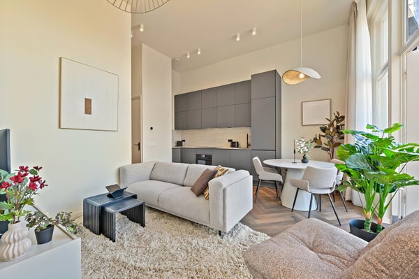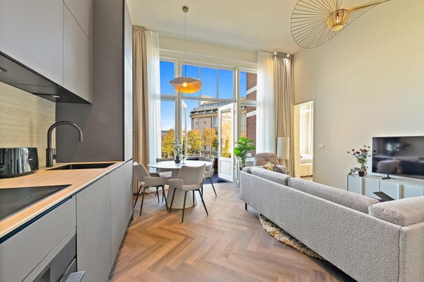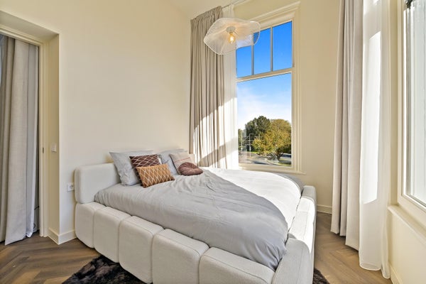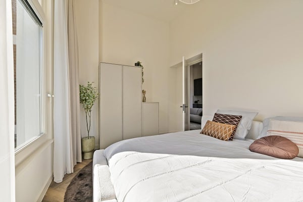 Dit heerlijke eenslaapkamer appartement is gelegen op de eerste etage. De entree is bereikbaar via de centrale voordeur van het indrukwekkende gebouw. Trap naar de eerste etage. Voordeur met hal en meterkast. Toegang tot de fenomenaal gerenoveerde woonkamer met visgraat vloer en open keuken. De woning is door de plafondhoogte en raampartijen licht en luxe. De keuken is van alle gemakken voorzien, denk aan een vaatwasser, een inductie kookplaat, een koelvriescombinatie, een Quooker voor direct kokend water en voldoende kastruimte. Via de woon-eetkamer toegang tot de schitterende badkamer met ligbad, inloopdouche, wastafel met meubel, spiegel met verlichting en verwarming en twee handdoek radiatoren. Separaat toilet gerenoveerd in dezelfde stijl als de badkamer. De prettige slaapkamer is voorzien van een tweepersoonsbed en een handige kledingkast en is maarliefst 11,4m2! Het terras is royaal (10m2) en gelegen op het oosten.