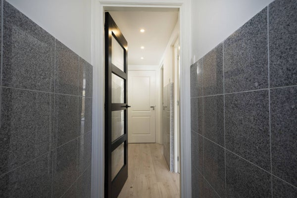 Via een kleine hal kan u de badkamer in, tweede slaapkamer en via een trap naar de derde slaapkamer.