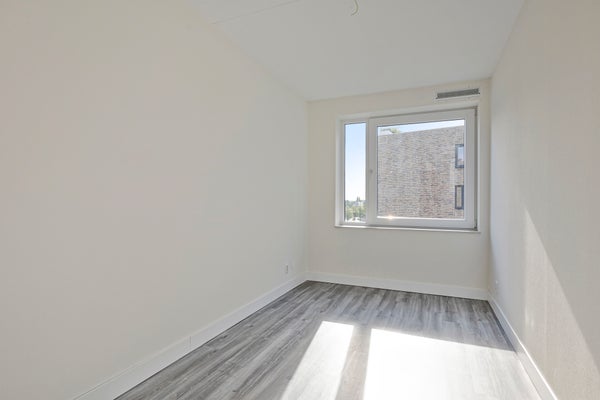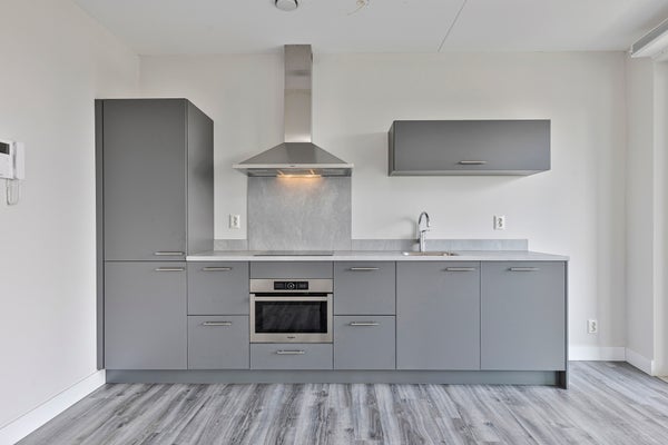 Vanuit de hal zijn alle vertrekken van het appartement te bereiken. Bij entree vindt u aan de linkerkant het separate toilet en aan de rechterkant de eerste slaapkamer van circa 9 m2. Aan het einde van de gang bevinden zich de tweede slaapkamer van circa 13 m2, de inpandige berging met wasmachine- en droger aansluiting en de moderne badkamer. Aan de achterzijde van het appartement is de woonkamer gelegen van circa 30 m2 met open keuken. De moderne keuken is uitgerust met alle benodigde inbouwapparatuur. Het balkon is te bereiken vanuit de woonkamer en de eerste slaapkamer.