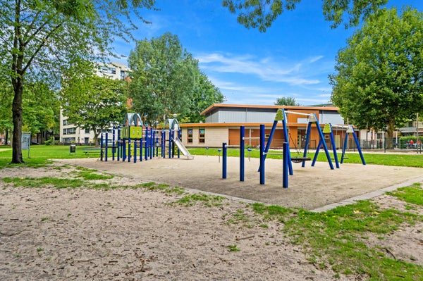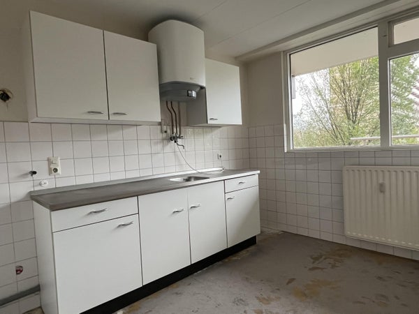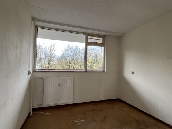 Entree woning met tochthal, gang met meterkast, bergkast met huurboiler, wc, eenvoudige badkamer met douche. Eenvoudige ruime keuken met huurboiler. 3 slaapkamers. Ruime woonkamer met open verbinding met zijkamer. Deze kamer is eenvoudig af te scheiden om te gebruiken als 4e slaapkamer. Balkon op het zuiden. In de kelder van het complex bevindt zich een berging behorend bij de woning.