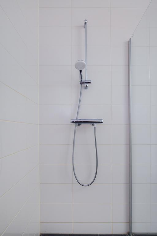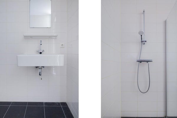 Badkamer met douche en wastafel. Apart toilet.