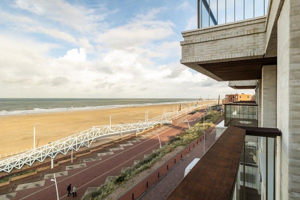 De gemeenschappelijke (coffee)loungeruimte op de eerste verdieping is voorzien van fraai meubilair en heeft een balkon met uitzicht op zee.