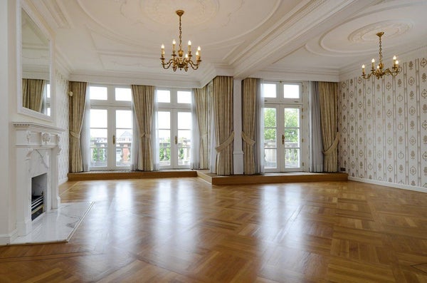 De combinatie van ruimtelijk klassiek en stads wonen is zeer zeldzaam maar deze woning biedt beide karakteristieken uitstekend. Met vele goed onderhouden ornamenten in het gehele pand, de hoge plafonds, de klassieke architectuur, het ruime balkon en natuurlijk de prachtige gedeelde achtertuin maken deze woning tot een verborgen parel van de stad. Dit appartement van 119 m2 bestaat uit 2 slaapkamers en 2 badkamers, een ruime woonkamer en een en-suite keuken. Het appartement is in uitstekende staat en benadrukt de klassieke eigenschappen zoals prachtige ornamenten aan de wanden en het plafond en de hoogwaardige houten vloeren.