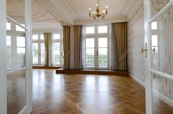 - goed onderhouden ornamenten aan wanden en plafond door het gehele pand,