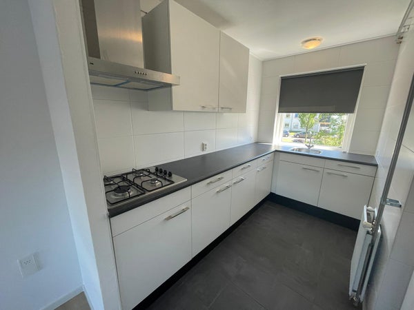 In 2021 is het appartement volledig gerenoveerd — nieuwe keuken, badkamer, toilet, én er liggen nette laminaatvloeren, tapijt en rolgordijnen door de hele woning. Instapklaar en fris.
