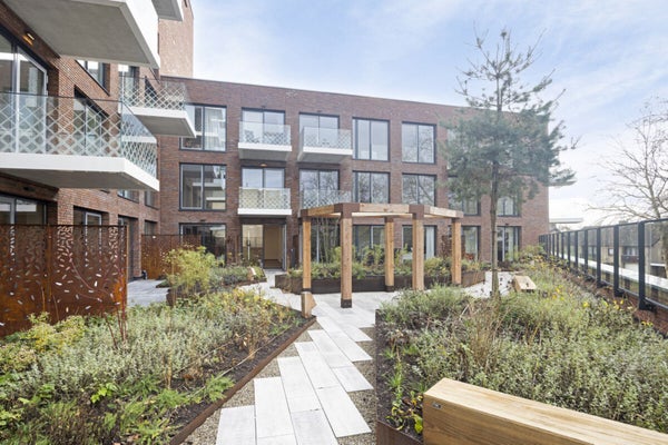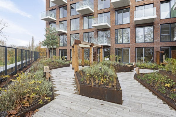 Het complex telt in totaal 54 energiezuinige appartementen en beschikt op het dak van de begane grond over een prachtige gemeenschappelijke binnentuin. Hier kun je tot rust komen of elkaar ontmoeten. De binnentuin is dusdanig ingericht dat je hier heerlijk met een boek in 'n van de zitjes kunt genieten van de buitenlucht. De tuinarchitect heeft zich gebogen over het ontwerp met oog voor de biodiversiteit en laagdrempelig gebruik.