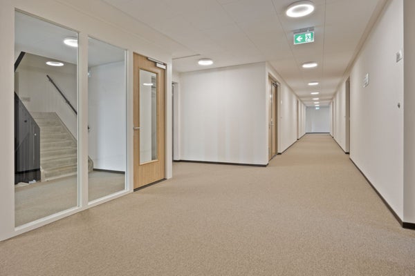 Ook aan de wanden en vloer is gedacht. Alle wanden zijn behangen met glasvezelbehang en geschilderd in een neutrale kleur. De vloer is bedekt met een strakke pvc-vloer.