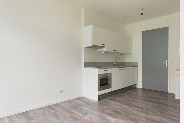 Een compacte woonstudio van 23 m² op de begane grond van Wij Boreel in Deventer. De studio wordt opgeleverd met een nette vloerafwerking en rolgordijnen.