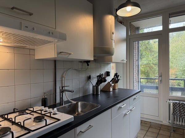 Entree/hal, apart toilet, ruime inbouwkast, eerste 2 slaapkamers waarvan eentje met balkon aan de achterzijde. Vanuit de keuken heb je toegang tot het tweede balkon en de badkamer met douche, wastafel en wasmachine aansluiting. Het appartement heeft een ruime woonkamer met grote ramen, vanuit de woonkamer heb je toegang tot de derde slaapkamer.