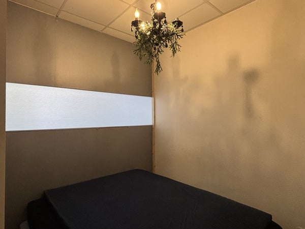 De slaapkamer ligt centraal in de woning en is rustig gesitueerd. Aan de achterzijde vind je de badkamer met douche en wastafel.