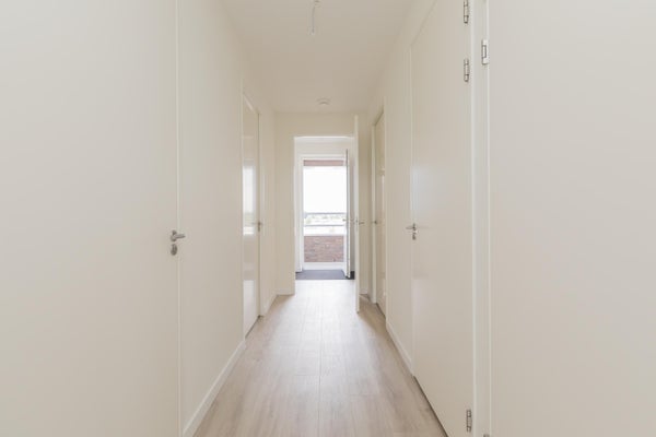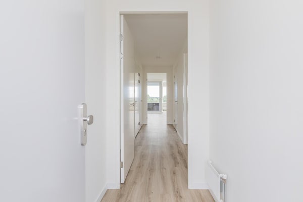 Bij binnenkomst betreed je een lange en nette hal die toegang biedt tot alle vertrekken in de woning. De wanden zijn strak afgewerkt en de gehele woning is voorzien van een hoogwaardige pvc-vloer.