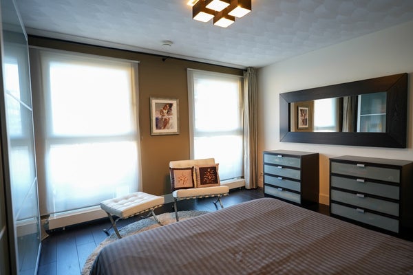 De twee slaapkamers aan weerzijden van het appartement zijn ruim bemeten, 18m2 en 30m2, en voorzien van kamerhoge gordijnen.