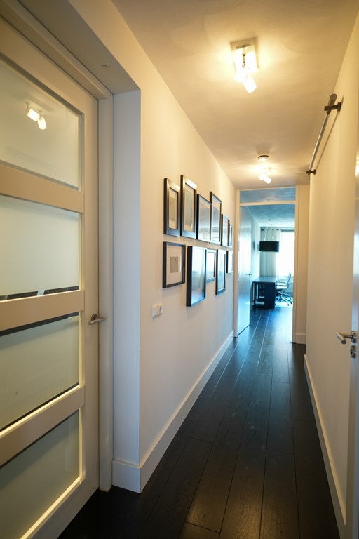 Het gehele appartement is strak en modern afgewerkt met design binnendeuren, glad gestuukte wanden, gestuukte en geschuurde plafonds, en een doorlopend gelegde vloer zonder dorpels. Alle ramen zijn tevens voorzien van rolhorren wat zorgt voor een ongestoorde nachtrust tijdens de zomer.