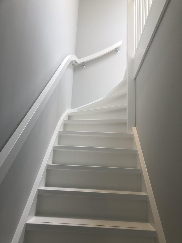 Entree/hal met trapopgang naar de tweede verdieping en veel lichtinval via een dakraam.
