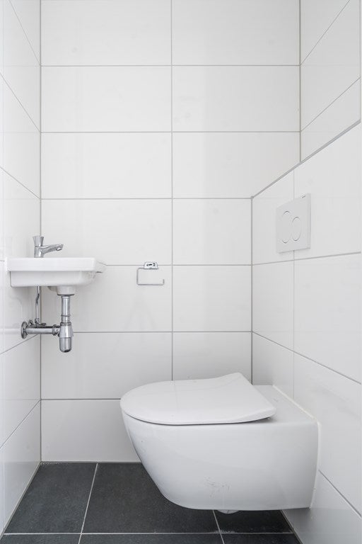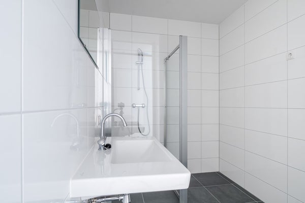 De badkamer is voorzien van keramische tegels in de kleur antraciet, wastafel met bijpassend planchet, douche, wasmachine aansluiting en een spiegel. Daarnaast heeft het appartement een eigen provisieruimte en een separaat toilet en 2 ruime slaapkamers.