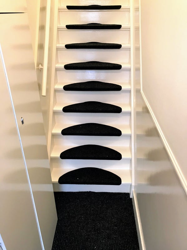 Overloop met hangtoilet en trapopgang naar de tweede verdieping.