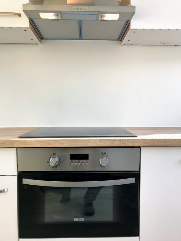 Keuken (ca 3,10 x 1,85m): met o.a. inductie, oven/magnetron combi, afzuigerkap, vaatwasser, vrijstaande koelkast en toegang tot balkon