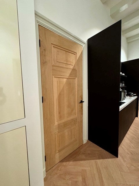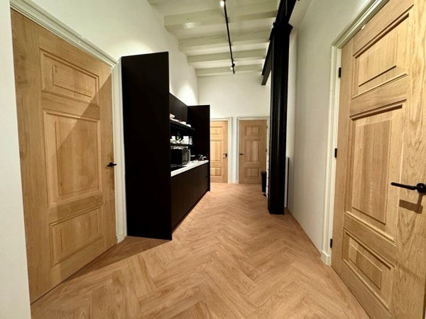 Bij binnenkomst kom je in de eerste handgemaakte open keuken, volledig uitgerust met hoogwaardige inbouwapparatuur. Vanuit deze keuken heb je toegang tot een toilet en een berging, die tevens voorzien is van een combi-was-droogmachine.