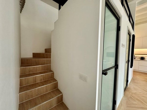 Het appartement bevindt zich op de begane grond en beschikt over meerdere ingangen. De hoofdentree leidt naar de eerste keuken en de rest van het appartement, terwijl extra zij-ingangen zorgen voor gemakkelijk toegang vanaf de omliggende gebieden, inclusief de parkeerplaatsen.