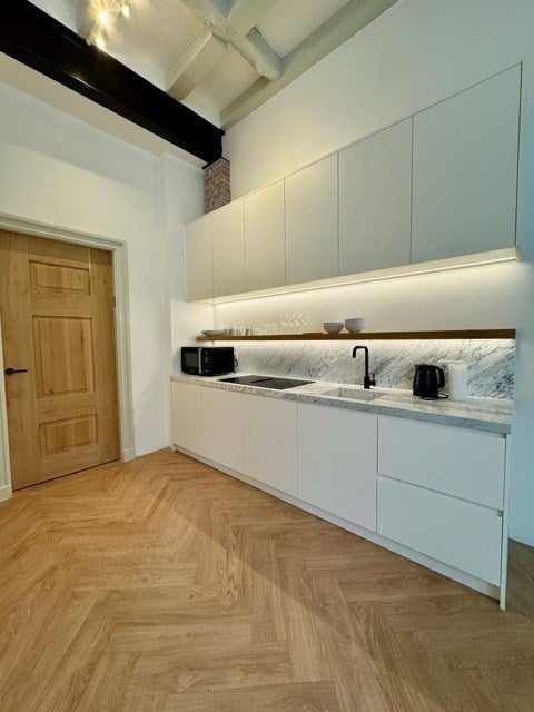 Gelegen op slechts een paar stappen van de Kalkhaven, cafés, boetiekwinkels en schilderachtige grachten, biedt dit appartement een perfecte mix van comfort, stijl en stadscharme. Geniet van het wonen in een levendige buurt met een unieke sfeer.