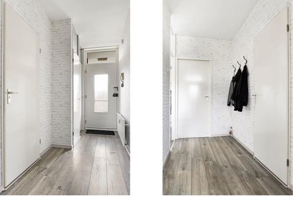 Entree, hal met intercom, meterkast (7 groepen, aardlekschakelaar en glasvezelaansluiting), inpandige berging en toegang tot de overige vertrekken.