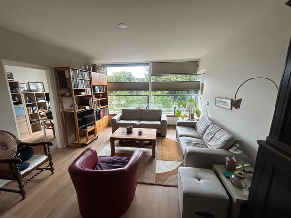 De lichte en ruime woonkamer vormt het hart van de woning en biedt volop plek voor een gezellige zithoek én een ruime eethoek. Grote ramen zorgen voor veel natuurlijk licht en een prettig uitzicht op het groen buiten.