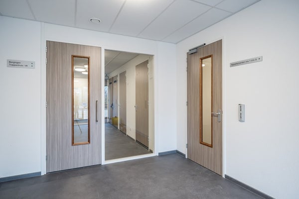 Op de begane grond bevinden zich de privé bergingen voor het stallen van bijvoorbeeld fietsen.