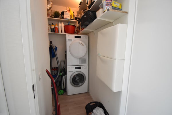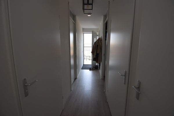 Vanuit de hal van jouw appartement heb je toegang tot alle ruimtes van de woning. Meteen bij binnenkomst zit de meterkast naast de voordeur en links een slaapkamer van respectievelijk 10m2. Halverwege de gang bevinden zich het toilet met hangcloset en fonteintje en aan de andere kant van de gang vind je de badkamer met douche en wastafel. De berging zit aan het einde van de gang en hier zitten ook de voorzieningen voor witgoed. De woonkamerdeur is nu nog de enige deur die aan deze gang grenst.