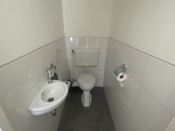 Via de hal kom je eerst het separate toilet tegen. Als je doorloopt, bereik je de lichte woonkamer aan de voorzijde van het pand, waar je heerlijk kunt ontspannen. De badkamer, voorzien van een wastafel en douche, ligt direct naast de woonkamer. Verder vind je een ruime keuken met genoeg plek voor een eettafel – ideaal voor gezellige avonden met vrienden of familie.